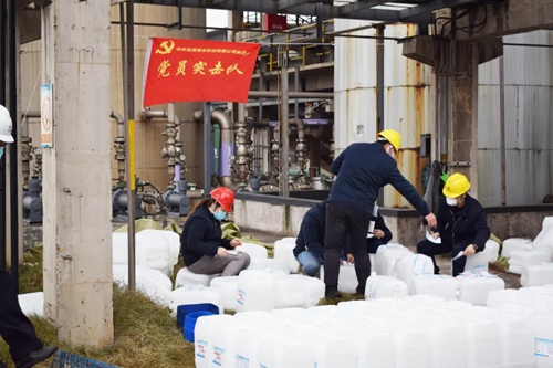 各基層黨組織在集團公司黨委的統一指揮下,快速聯(lián)動(dòng)、協(xié)同作戰,其中二級子公司海豐和銳黨委組織50余名黨員成立了“黨員突擊隊”沖鋒在前,堅守崗位一線(xiàn)確保全天候生產(chǎn)消毒原液不停歇;集團公司營(yíng)銷(xiāo)黨支部堅決克服貨源稀缺、物流停運等困難,千方百計找尋采購渠道保障消毒液及包裝原料供給;集團公司天暢物流黨支部日夜兼程奔赴疫情防控的前線(xiàn),堅決保障次氯酸鈉消毒原液捐贈和配送。