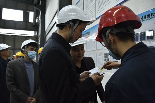 張副市長(cháng)一行深入天億新材料生產(chǎn)車(chē)間,詳細了解生產(chǎn)經(jīng)營(yíng)和安全清單責任制落實(shí)、安全設施設備以及標準化班組創(chuàng )建情況。